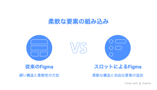 従来のFigmaでは、要素を自由に組み入れることが難しく、コンポーネントの構造が硬いという課題がありました。